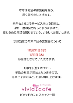 vividcafeスタッフ1/4(日)【出勤15名】フード持ち込み無料day